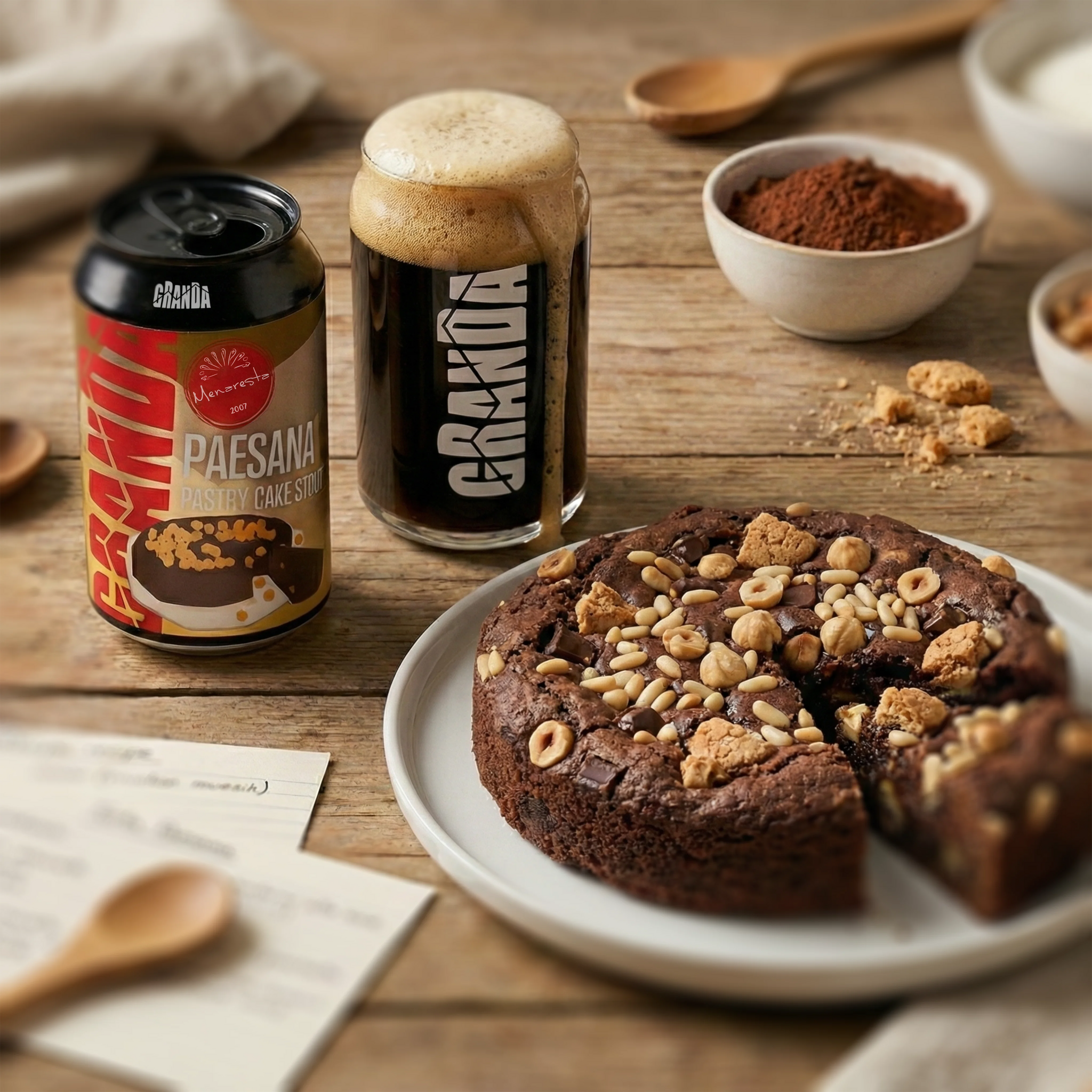 Ispirata alla torta Paesana brianzola, nasce dall’incontro tra memoria e sperimentazione. Una birra scura, intensa e contemporanea, realizzata con Nocciola Piemonte IGP e pane del panificio di Davide Longoni. Profonda e avvolgente: cacao e nocciola in primo piano, seguite da note di amaretti, uvetta e pane tostato