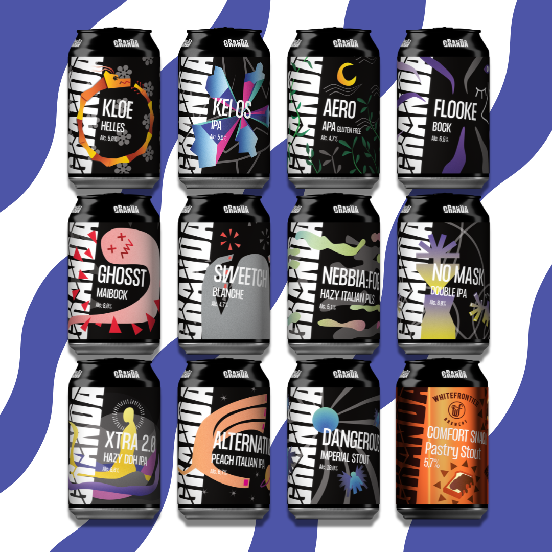 Questa scatola è stata pensata per chi vuole esplorare diversi stili di birra artigianale senza limitarsi a una sola direzione: lager chiare, birre ambrate, IPA moderne, sour aromatiche e stout intense convivono in un’unica selezione che racconta tutta la varietà e la creatività del Birrificio Granda.