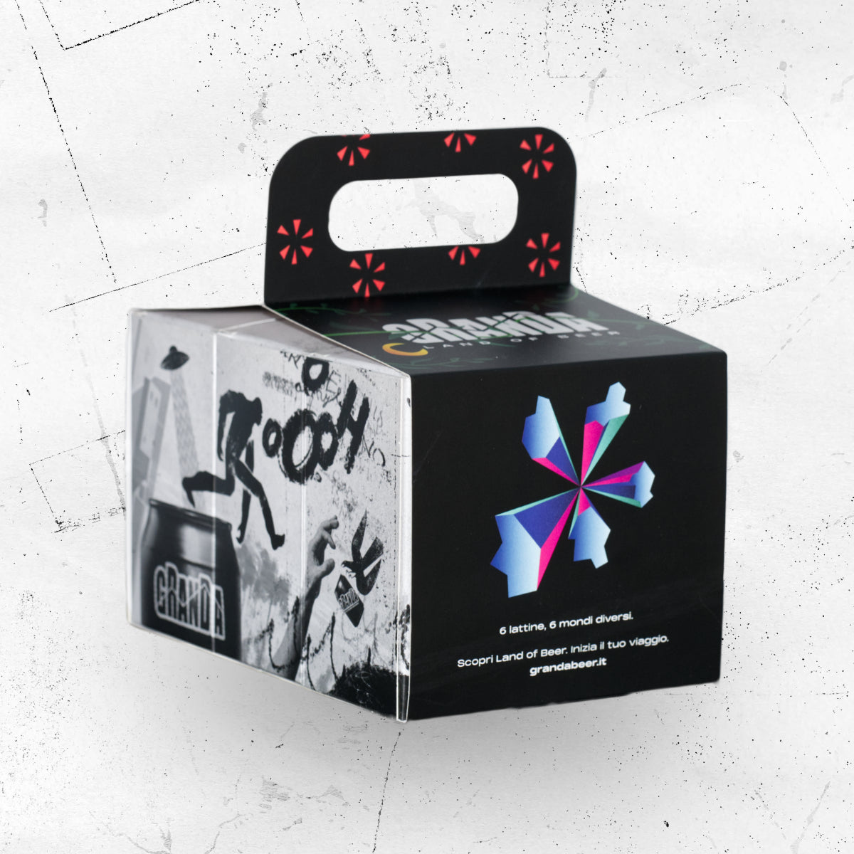 Il pack si apre a fisarmonica per svelare tutte le fake news sulla birra artigianale: noi non ve le diamo a bere! La grafica della fascia con manico che veste il pack la scegli tu: ti senti più Black & White, Explosion o Mosaic?